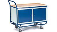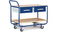 • Roulettes pivotantes avec blocage double : bandage en caoutchouc plein, roulements à rouleaux, chape en tôle d'acier galvanisé.